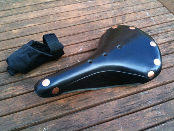 Still svelte Barely noticeable lacing Extra hole completes route for lacing Here’s a well-used Brooks B17 Standard leather saddle. It lives on Cyril, my 1932 Raleigh Record, and...