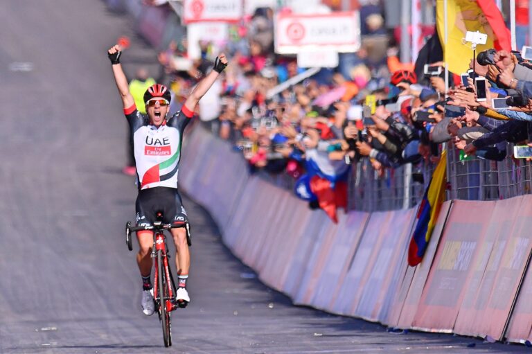 Colombian takes pink jersey into first rest day after sprinting to victory in Cagliari