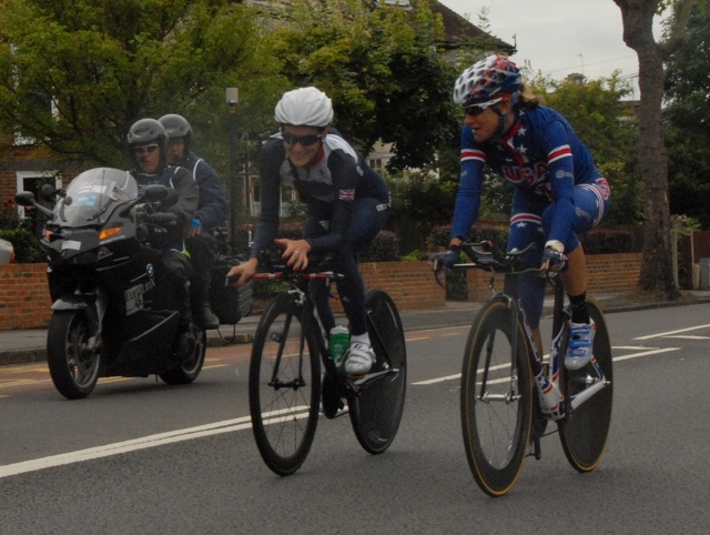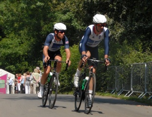 Armitstead, Pooley, and Wiggins roll out on the TT course