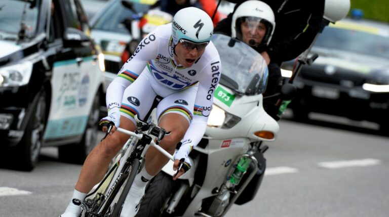 World champion beats Fabian Cancellara; Nairo Quintana suffers heavy crash