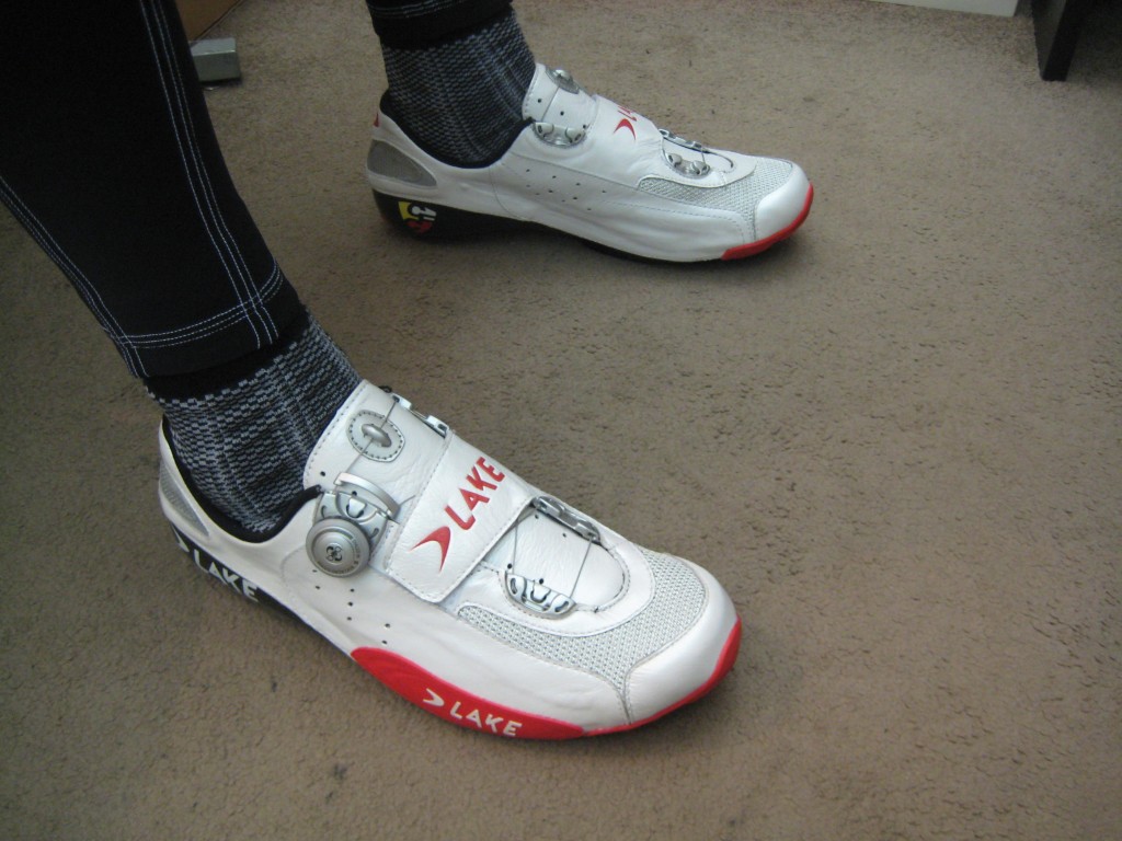 US shoe manufacturer Lake has a long history of making attractive cycling shoes with a difference, this often meaning the use of tough kangaroo-skin leather for the upper. A chance conversation with occasional RCUK contributor Phil Cavell of Cyclefit revealed the firm’s CX 401 model offers another, more important ( at least from my point of view) distinction; it offers perhaps the most rearward cleat positioning possibility of any production road pedal cleat format shoe.
